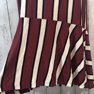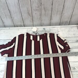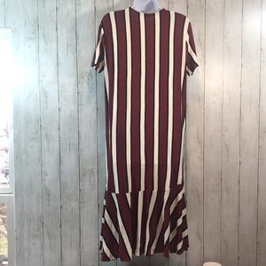 Black, ivory and burgundy stripes, crewneck, short sleeves, stripes on bottom go in different pattern,colors may vary due to lighting, length approximately 40”,NWT, Size: L