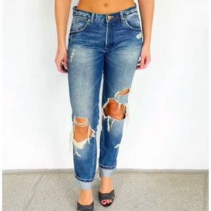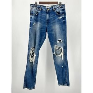 Zara Trafaluc TRF Denim Distressed Straight Leg Jeans Medium Wash Women's Size 8
