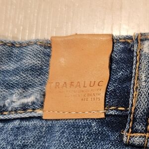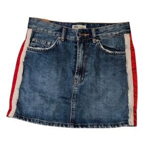 Zara Trafaluc TRF Denim Jean Mini Skirt w/Red & White Stripes size XS EUC
