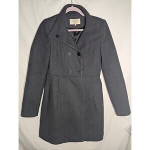 Zara Trafaluc TRF Womens Grey Double Breasted Pea Coat Overcoat Sz S Fitted