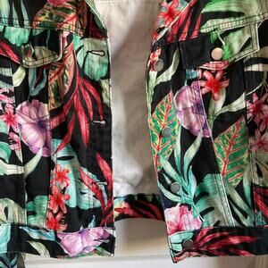 Zara Trafaluc Tropical Printed Cropped Denim Button Front Jacket - Size Medium
