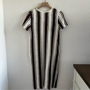 Zara Trafaluc Vertical Striped Dress Y2K V Neck Cream Brown Small