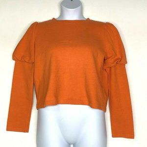 Zara Trafaluc Women Blouse Size Medium Long Sleeve Orange Pullover Round Neck