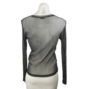 Zara Trafaluc Women's Black Sheer Mesh Glitter Sparkly Long Sleeve Blouse Top S
