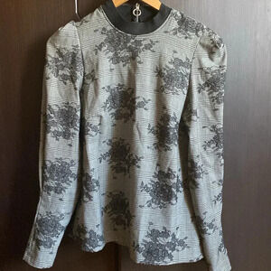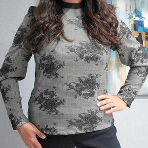 Zara Trafaluc Women's Houndstooth Floral Crew Neck Blouse Gray & Black s…