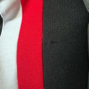 Zara Trafaluc Women's Long Sleeve Dress Striped Sz Med Black/Red/White EUC. There is a very small pin hole and pull in the material on the left arm up by the shoulder. It is hardly noticeable. Please see picture. Measurement from shoulder to hem 41 inches. Wrist to shoulder seam 25.5 inches. Armpit to armpit laying flat 18 inches.