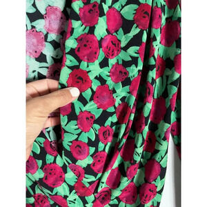 Zara Trafaluc Womens Long Sleeve Wrap Front Bodysuit Green Red Floral Sz S