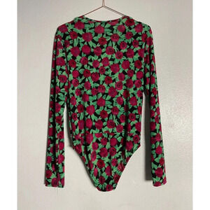 Zara Trafaluc Womens Long Sleeve Wrap Front Bodysuit Green Red Floral Sz S