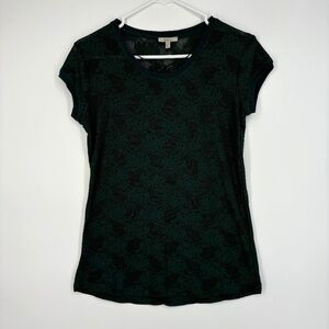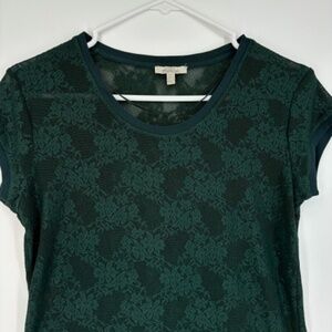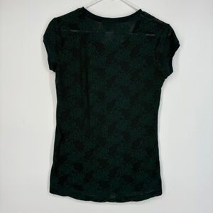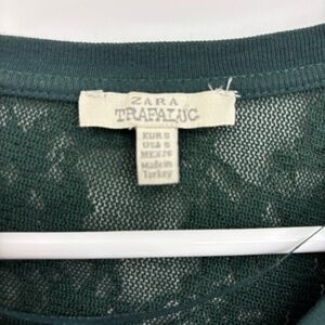 Zara Trafaluc Womens Small XS Stretch Lace T-Shirt Green Floral Sheer Short Slv