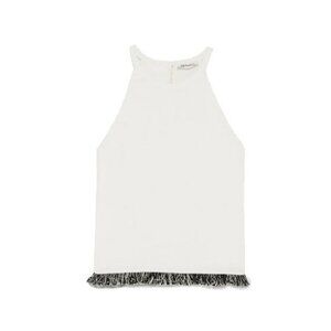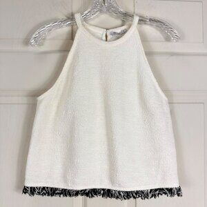 Zara Trafaluc Womens White Black Fringe Halter Top Size Small