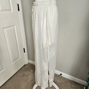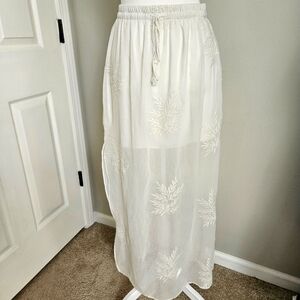 Zara Trafaluc Women's White Sheer Embroidered High Side Slits Maxi Skirt Waist