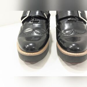 Zara Trafaluc Y2K Black Patent Loafers Shoes Oxford Platform Buckle Trim size US 6.5 EU 37. Goth retro granny grange gorpcore witchy