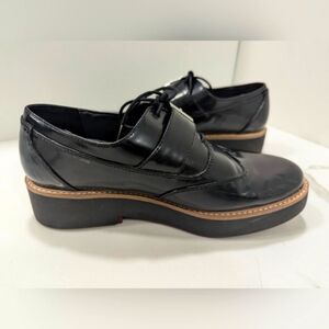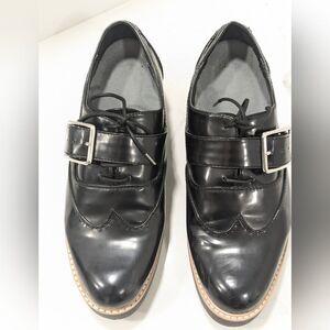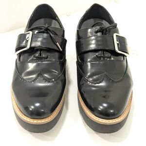 Zara Trafaluc Y2K Black Patent Loafers Shoes Oxford Platform Buckle retro 6.5