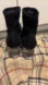Zara Trafaluc black faux suede stretch sock ankle boots w/ acrylic heel, size 38