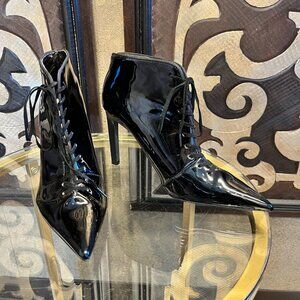 Zara Trafaluc black pointy toe lace ankle heel boots