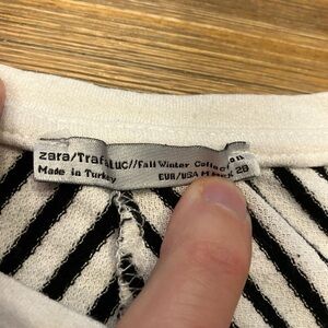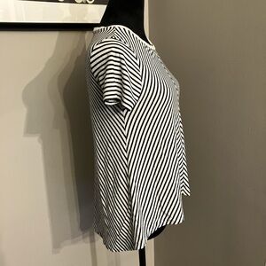Zara Trafaluc medium black and white striped short sleeve top with hi/lo hemline
