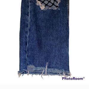 Zara Trafaluc Denimwear High Waisted Fishnet Distressed Raw Hem Jeans