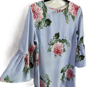 Zara | Trafauc Collection Blue/White Striped Floral Dress | Size Medium Women's