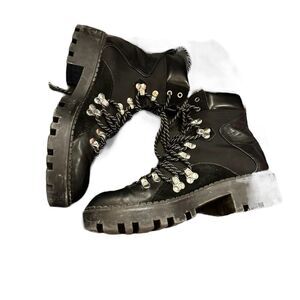 Zara Trafuc Black lace up Boots Moto / Combat Boots size 37 EU 6.5 us