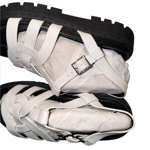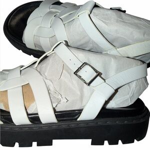 Stylish white and black strappy fisherman sandals. Perfect for casual outings and great for spring and summer, can be matched with so many different colors and outfits. Approximate measurements are pictured, in great condition, reference images.