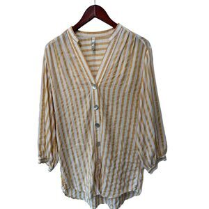 Zara Trf Collection Mustard Yellow Striped Blouse Boho Casual Size XS