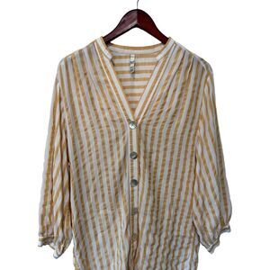Zara Trf Collection Mustard Yellow Striped Mother of Pearl Blouse Size XS