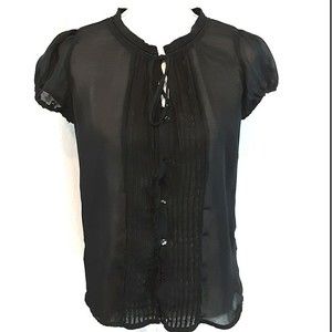 Zara Trf Collection Pleated Accent Black Sheer Short Sleeves Top Small