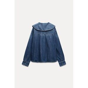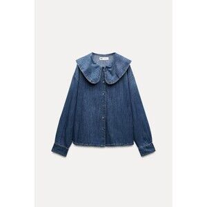 Shirt with Peter Pan collar and long sleeves. Front button closure.