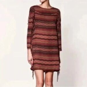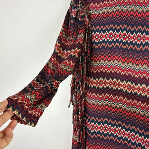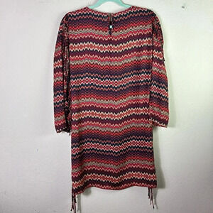 Zara Tribal Bohemian Tunic Shift Dress zig zag Fringe Long Sleeve size M