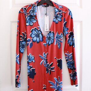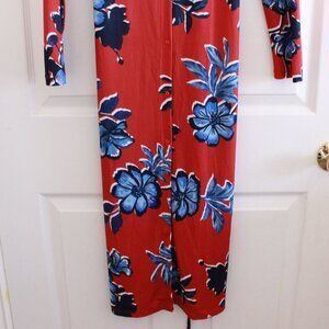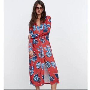 Zara Tropical Floral Print Button Front Long Sleeve Tie Front Shirt Dress