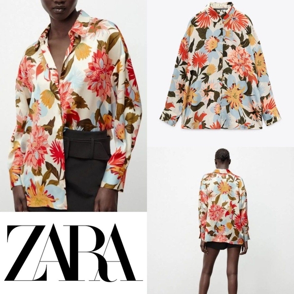 zara floral blouse • satin shirt • silky button down • resort vacation top • garden floral print • spring summer blouse • workwear chic • bold print top • trending florals • elegant top • classic button up