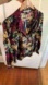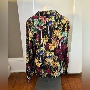 Zara blouse, tropical print blouse, resort wear top, gold metallic blouse, long sleeve v-neck top