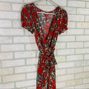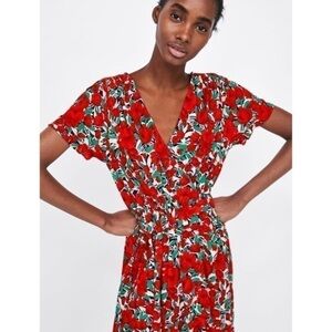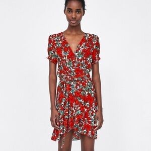 Zara Tulip Print Short Sleeve Wrap Dress Size S