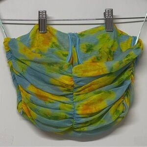 Zara Tulle Strapless Corset Top Bustier Blogger Favorite in Blue, Yellow, Green Tie Dye. Size Medium.