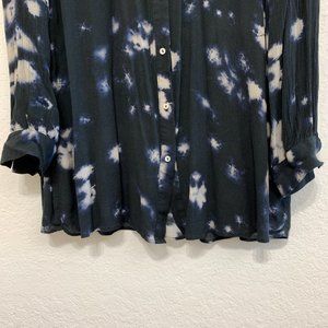 Zara Tunic Womens L Button Down Crinkle Tie-Dye Long Sleeve Pockets Loose Fit