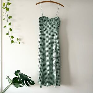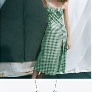 Zara Turquoises Linen Blend Polka Dot Dress S