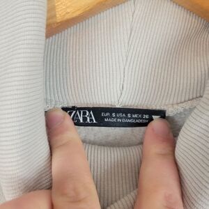 Zara Turtleneck Cropped Sweatshirt Cream Tan Size Small