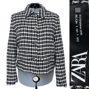 Zara Tweed Academia Jacket Short Heritage Style Old Money Button Up Blazer Sz: L