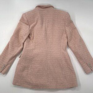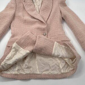 Zara Tweed Blazer Jacket Womens Large Pink Textured Double Breasted Career Lined