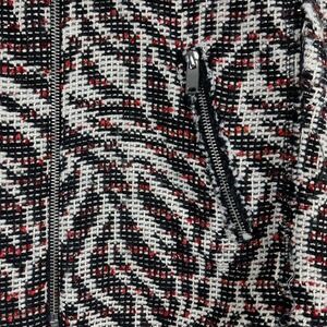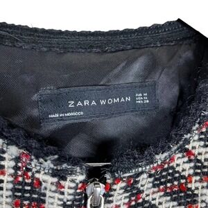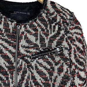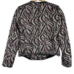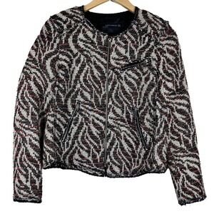 Zara Tweed Blazer Metallic Zebra Print Raw Hem Red Medium