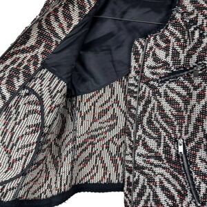 Zara Tweed Blazer Metallic Wool Zebra Print Raw Hem Red Medium