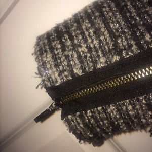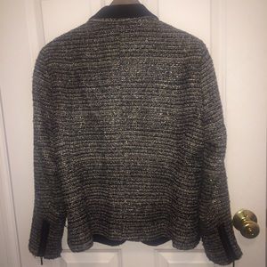 This blazer is the perfect holiday jacket, you can dress it up or down. It seems structured but feels very flexible on. Runs larger, which is perfect for layering. It is entirely lined, has two side pockets with zippers and a button in the center. Worn but still in good condition, check out pictures👆🏾