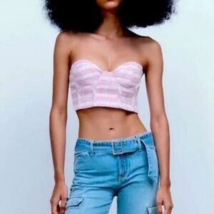Zara Tweed Bustier Top Women’s Sz Medium Pastel Plaid
