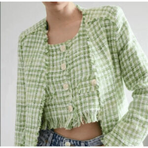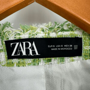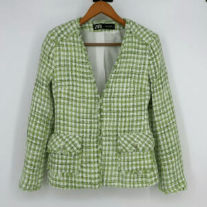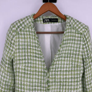 Zara Tweed Cropped Blazer Size S Lady Preppy Cream Green Classic