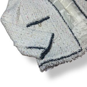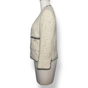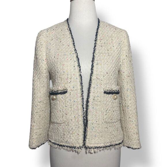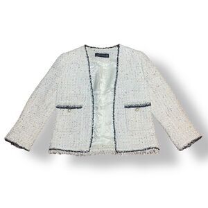 Zara Tweed Jacket Blazer Women XS Sequins Cream White Classic Smart Bloggers Fav