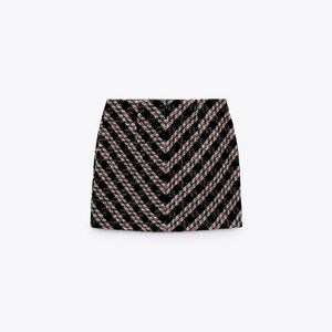 High-waisted skirt. Front false pockets with metal zippers. Back hidden in-seam zip closure.