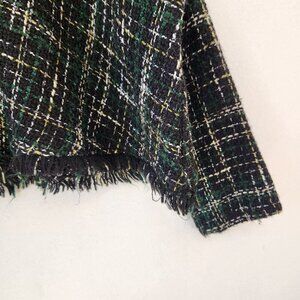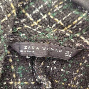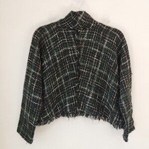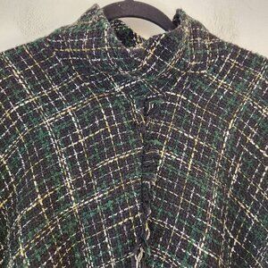 Zara Tweed Sweater Black Green Poncho Cape Crop Irish Women's S