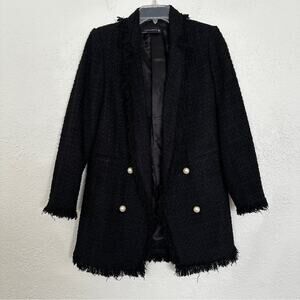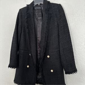Zara Tweed Textured Long Pearl Button Jacket Coat XS