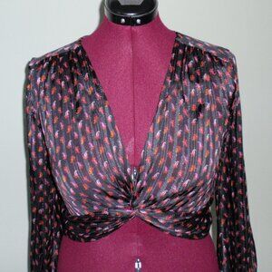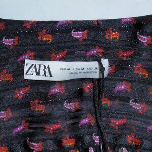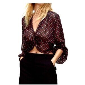 Zara Twist Long Sleeve Sheer Crop Top Black Red Paisley Print Balloon Sz…