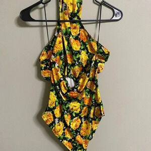 Zara Twist Neck Floral Rose Halter Bodysuit NWT Size Large New